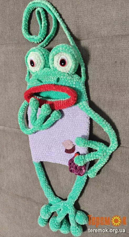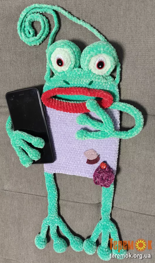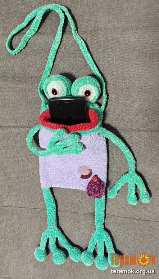 В'язана сумочка чехол для телефону подарунок жаба весела дитяча іграшка м'яка