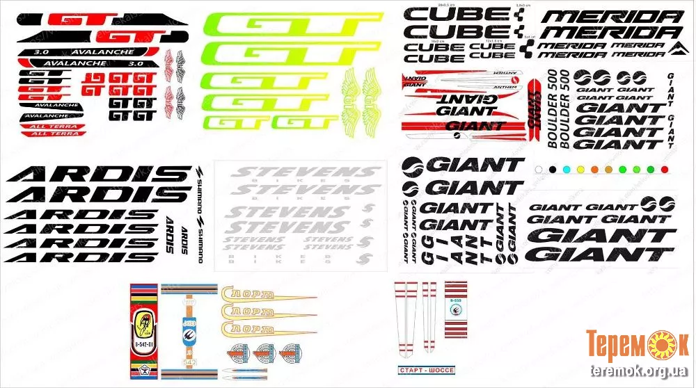 Наклейки стікери декалі на велосипедні амортизатори вилки обода рами! комплекти є різних брендів! Comanche Scott Giant Cube GT Kross Trek Crankbrothers Specialized Author Cannondale Bergamont Merida ХВЗ Україна Турист та інші. Є різні кольори!