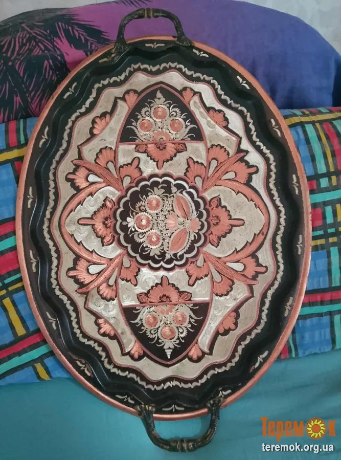 Піднос декоративний металевий з орнаментом 47 см. 300 грн.