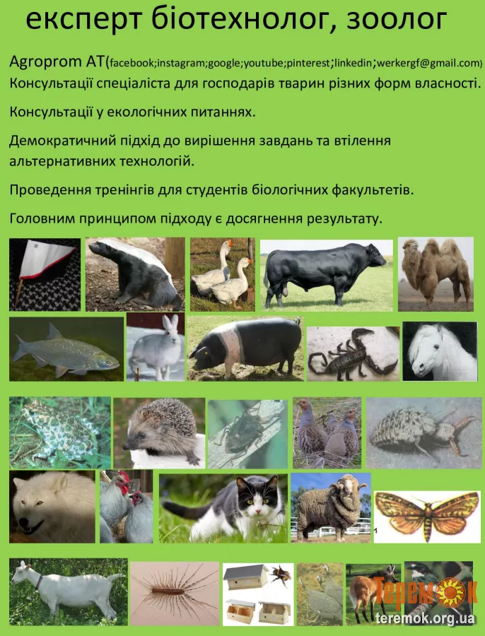 Послуги біотехнолога, зоолога. Консультації господарів різних форм власності. Консультації у екологічних питаннях. Сучасний демократичний підхід до виконання проектних завдань.