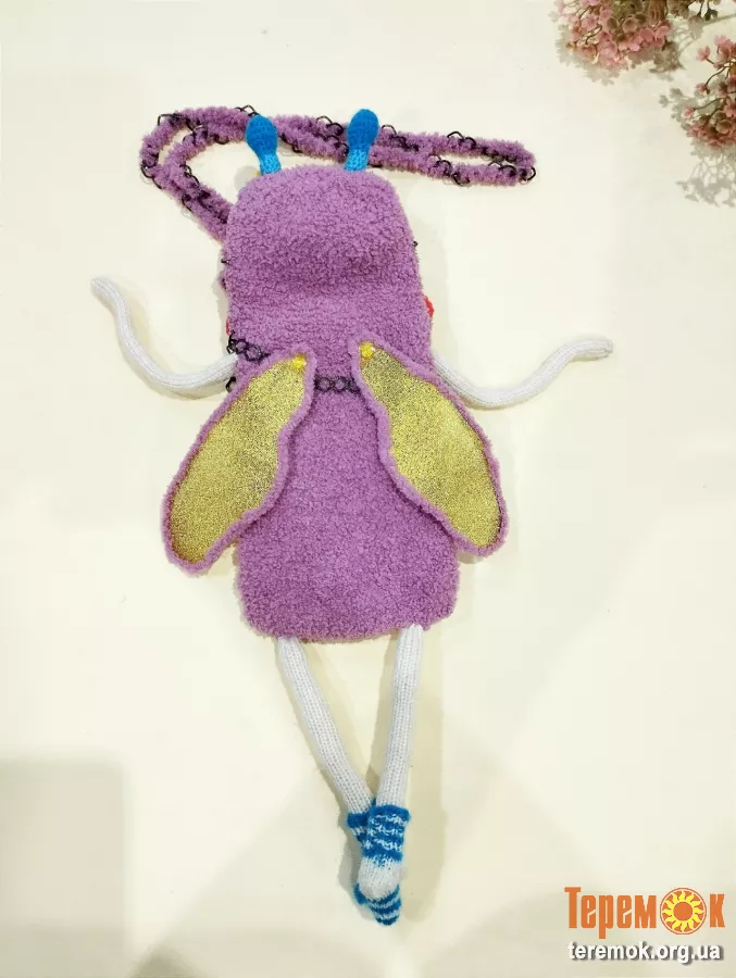 Сумка-чохол на довгій ручці у вигляді монстрика з крильцями. Пов'язана гачком із фантазійної пряжі, готові очі, додатково маленький аксесуар - сумочка на ланцюжку, шкарпетки можна знімати.