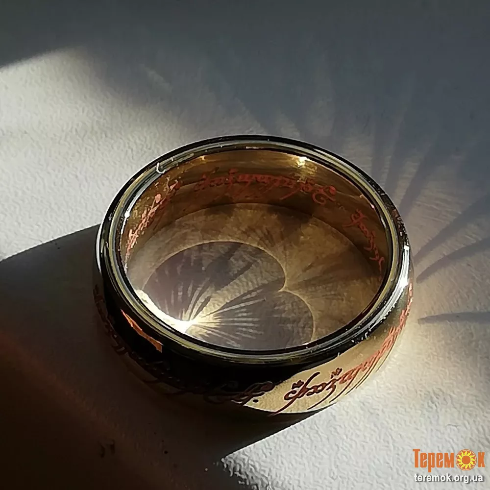 Изящный эльфийский узор, выполненный тончайшей гравировкой, украшает как внешнюю, так и внутреннюю стороны кольца. При дневном свете рунные символы приобретают теплый оранжево-коричневый оттенок, а в сумерках они начинают мерцать мягким лимонно-желтым светом, создавая магическую атмосферу. Важно отметить, что кольцо не оснащено встроенным источником света. Его сияние достигается благодаря фотолюминесцентному покрытию, нанесенному на руны. Чтобы активировать светящийся эффект, достаточно подержать кольцо под ярким светом — солнечным, от фонарика телефона, УФ-подсветки и других источников освещения. Это украшение идеально подойдет как элемент мистического антуража — будь то кольцо на пальце, брелок для ключей или кулон на цепочке. Оно поражает своей загадочной красотой и способно дополнить образ любого поклонника мира Средиземья. Ссылки на атмосферу фильма "Властелин колец": кольцо напоминает о великой силе и судьбе, заключенной в «Едином кольце», которое носил Фродо. Его светящиеся руны навевают воспоминания о древних эльфийских тайнах и величии Средиземья, пронизанного магией и приключениями. Такое кольцо — не просто аксессуар, а часть легенды, которую можно носить с собой, напоминая о борьбе добра со злом и бесконечной памяти великих героев.