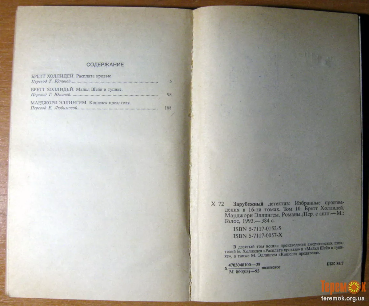 В десятый том вошли произведения американских писателей Б.Холлидея «Расплата кровью» и «Майкл Шейн в тупике», а также М.Эллингем «Кошелек предателя».