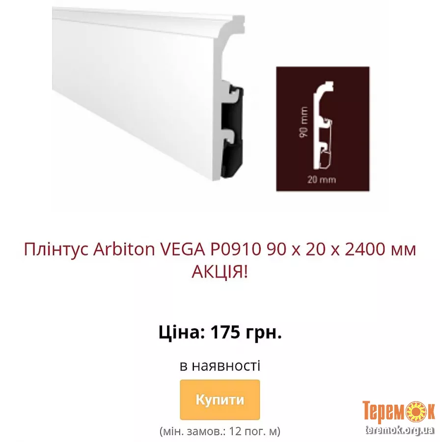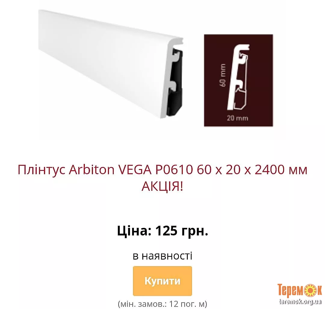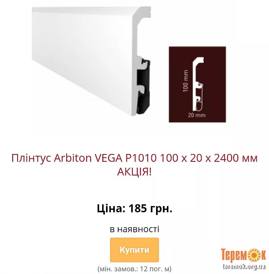 Зразок плінтуса є в наявності на вул. Клеманська 5 за попередньою домовленістю*