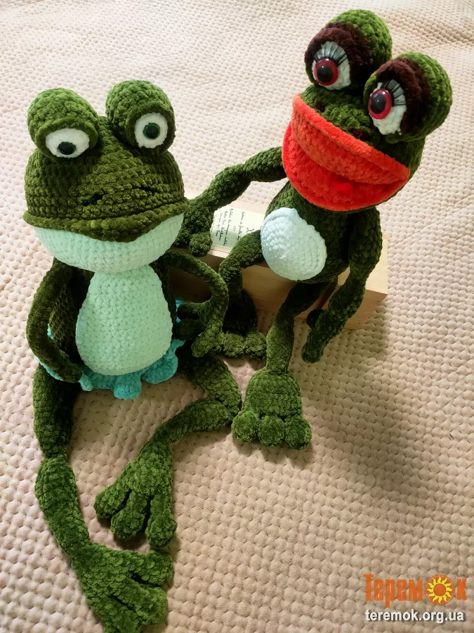 В'язана м'яка іграшка Жабка Квакушка 45 см ручна робота