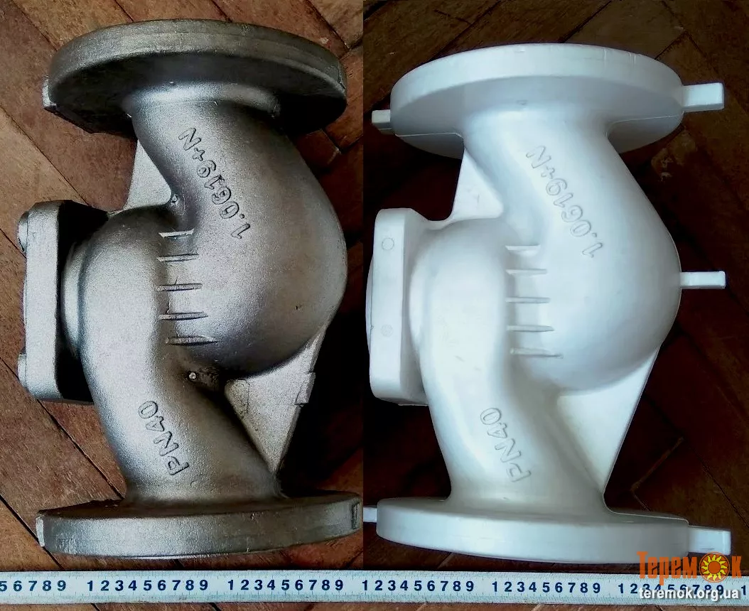 Виливання з металу корпусів трубопровідної арматури всіх марок. Таких видів трубоарматури: запірна, зворотна, запобіжна, розподільно-змішувальна, регулююча, відключаюча (захисна). Основні типи арматури: засувка, клапан, кран, дисковий затвор. Ми випускати конкурентоспроможну продукцію, яка відповідає міжнародним стандартам. В ливарному цеху застосовано енергоефективну технологію. Виробництво запірної арматури з високими експлуатаційними характеристиками відкриває нові можливості для експорту, сприяючи економічному зростанню країни. В Україні виробництво запірної арматури традиційно орієнтоване на чавуни марки СЧ200-СЧ400 (ДСТУ 8833:2019), які добре себе зарекомендували для роботи під низьким і середнім тиском. Однак для екстремальних умов (наприклад, при транспортуванні нафти з можливими абразивними домішками або хімічно активних речовин) нами застосовуються сучасні залізовуглецеві сплави з підвищеною зносостійкістю та використовуються вакуумовані піщані форми для виробництва точних виливків із високою чистотою поверхні. Ми застосовуємо цифрові технології – від комп’ютерного моделювання ливарних процесів (CAE) до 3D-друку ливарного оснащення. Такий приклад дозволить українським підприємствам конкурувати з європейськими виробниками, особливо в нішах спеціалізованої арматури для складних умов експлуатації. Прикладом сучасних технологій точного лиття є лиття металу за моделями, що газифікуються (ЛГМ-процес, Lost Foam Casting). Ллємо ремонтні чавунні хомути на труби різних діаметрів.