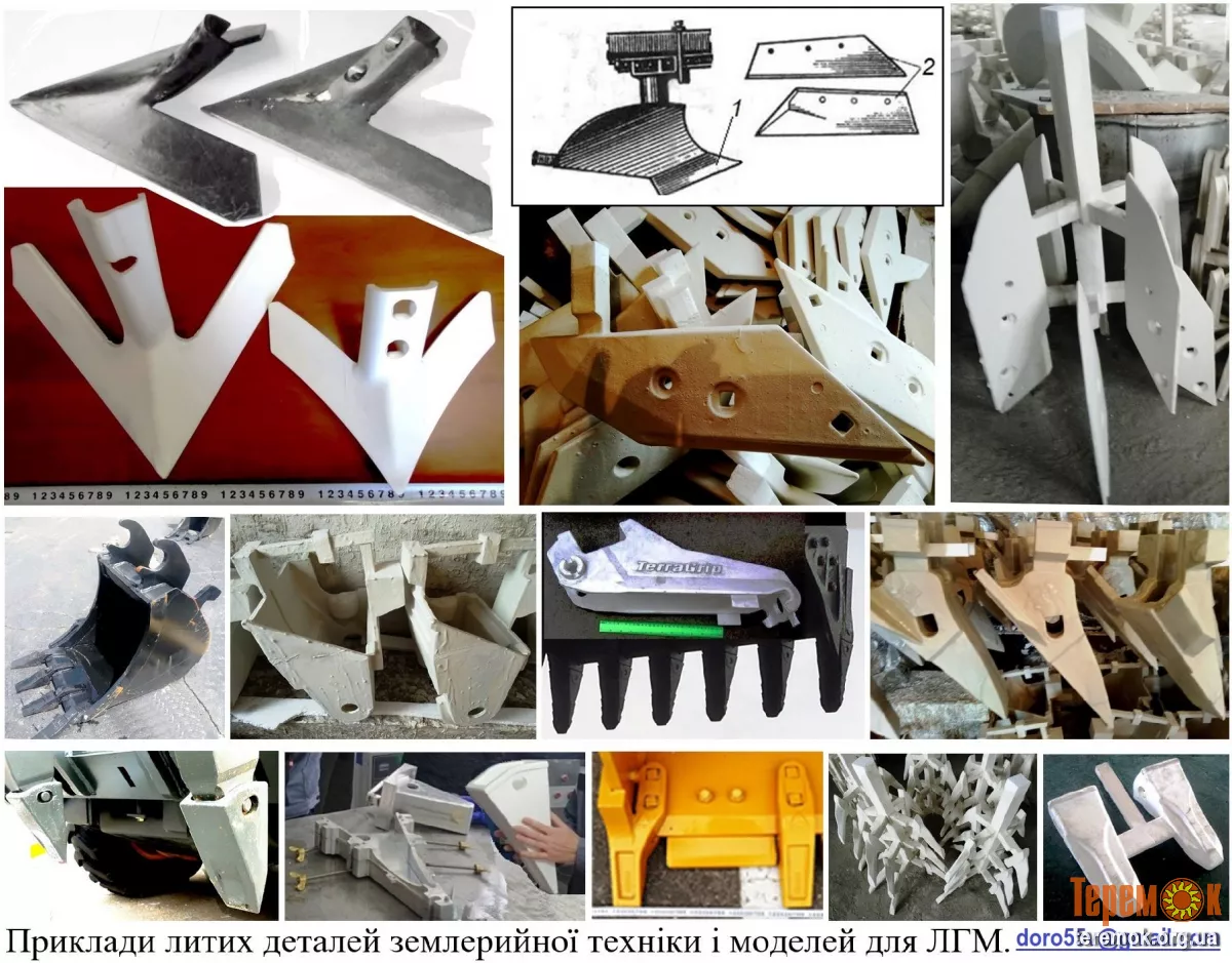 Зуб, коронка, адаптер ковша екскаватора, відвала бульдозера виготовляємо з литого металу. Виливки і запчастини для ремонту і обслуговування техніки, а також оснастки для виливання, лиття, пресування, спікання чи формовки. Виготовлення металевих деталей і запчастин, металевих виливків (відливок) — для обладнання, автотехніки, транспорту, тракторів і сільгоспобладнання, а також декоративні виливки. Лиття зубів, коронок, адаптерів під болт чи зварювання, глибокорозпушувач навісний тощо виготовляють у нашому ливарному цеху в Києві, навіть нестандартні запчастини до імпортної техніки.