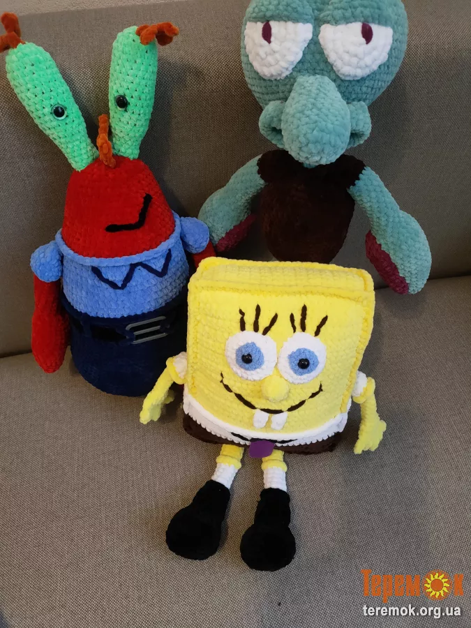Губка Боб квадратні штани іграшка в'язана ручна робота квадрат 24х20