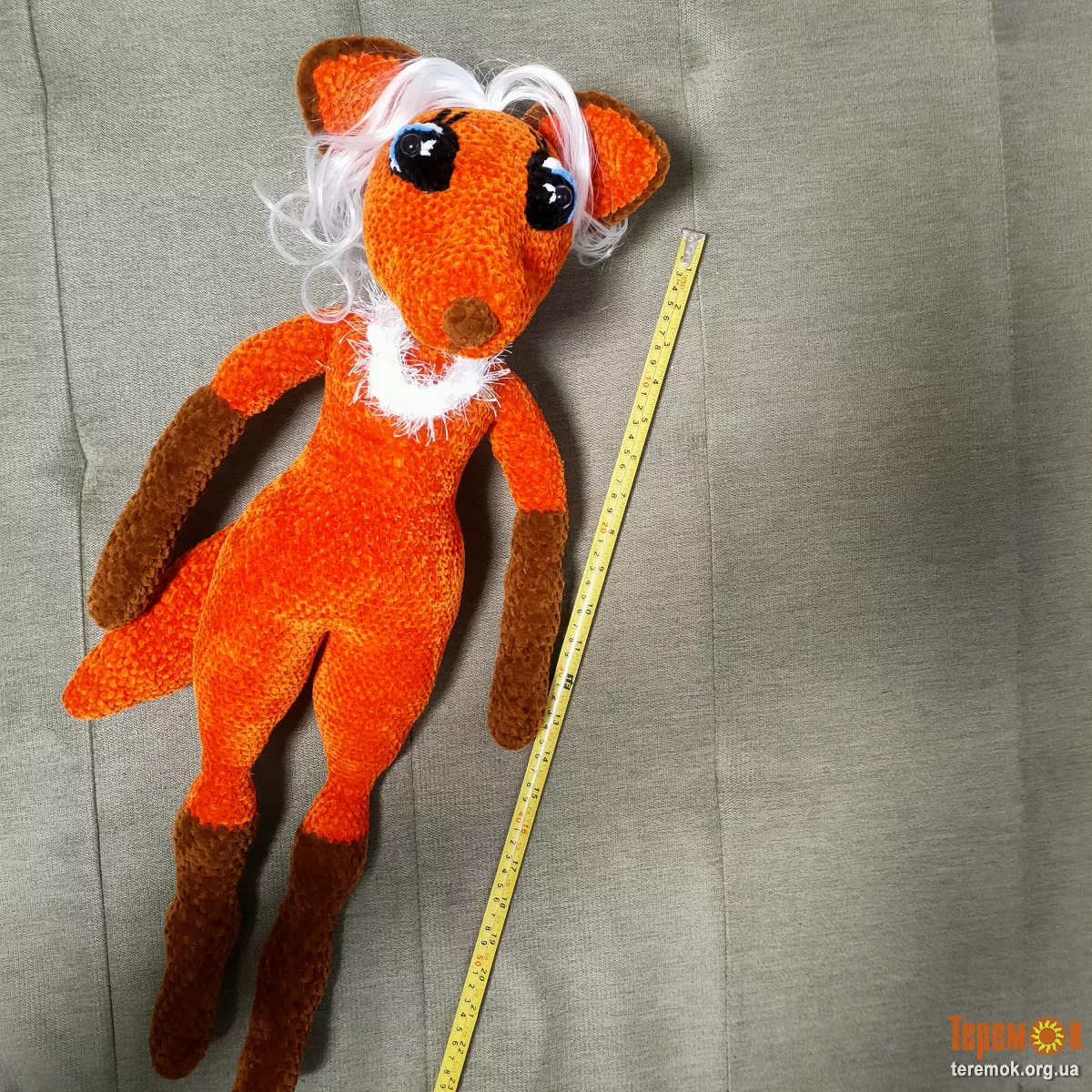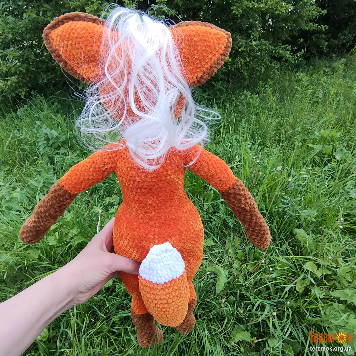 Лисичка лисиця лиска руда іграшка в'язана м'яка велика 60 см тваринка ручна робота hand made