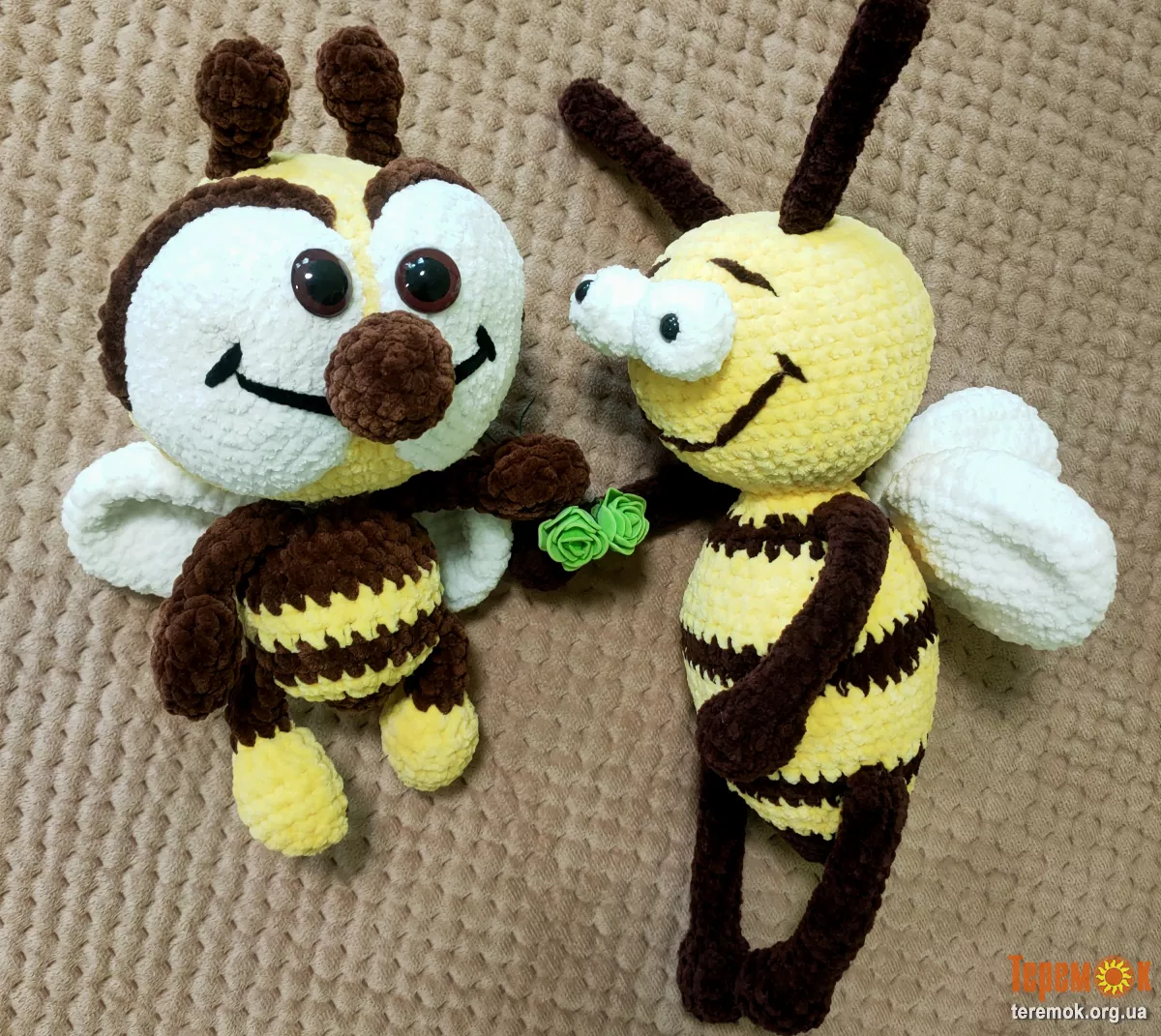 Іграшка жовта Бджілка комаха м'яка в'язана дитяча ручна робота