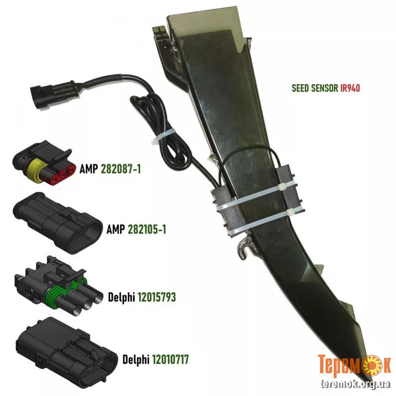 Використовуючи оптичну технологію, датчики насіння IR940 працюють за принципом фотодетекції. Інфро-червоні світлодіоди (LED) створюють тонке світлове поле по всій внутрішній частині насіннєвої трубки. Фотоприймач на протилежному боці трубки безперервно контролює інтенсивність світла, будь-яке насіння, яке порушує джерело світла, виявляється осередком фотодетектора, і відповідний імпульс передається на монітор. Постачається з 3 інфрочервоними світлодіодами для забезпечення точної швидкості сівби.