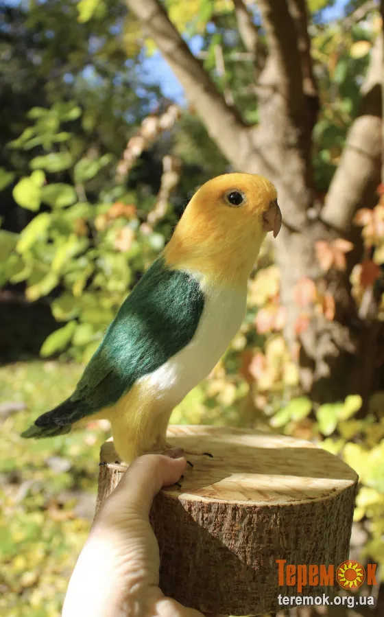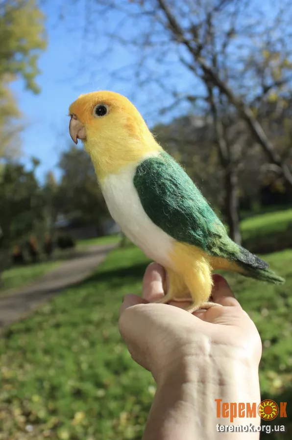 Попугай Каик іграшка валяна з шерсті войлочний папуга ручної роботи птица сувенір подарунок птица войлочная сухое валяние зелений попугай