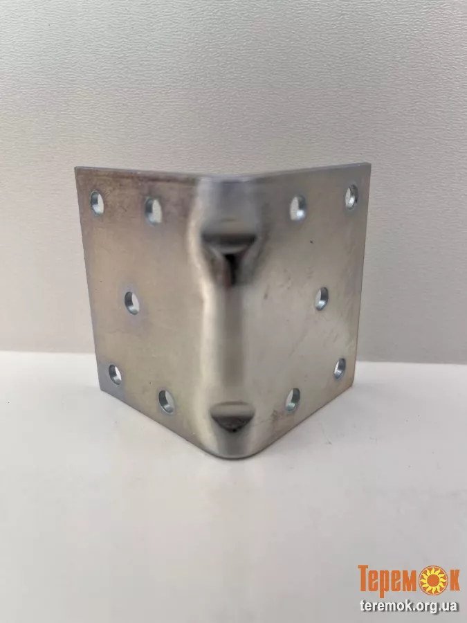 Цей куточок виготовлений, шляхом штампування, із сталі і покритий шаром цинку. Такий спосіб виготовлення забезпечує надійність і фортецю самого куточка. А обробка гальванічним шляхом дозволяє використати цей куточок в умовах підвищеної вологості, не побоюючись деформації і порушення цілісності куточка .