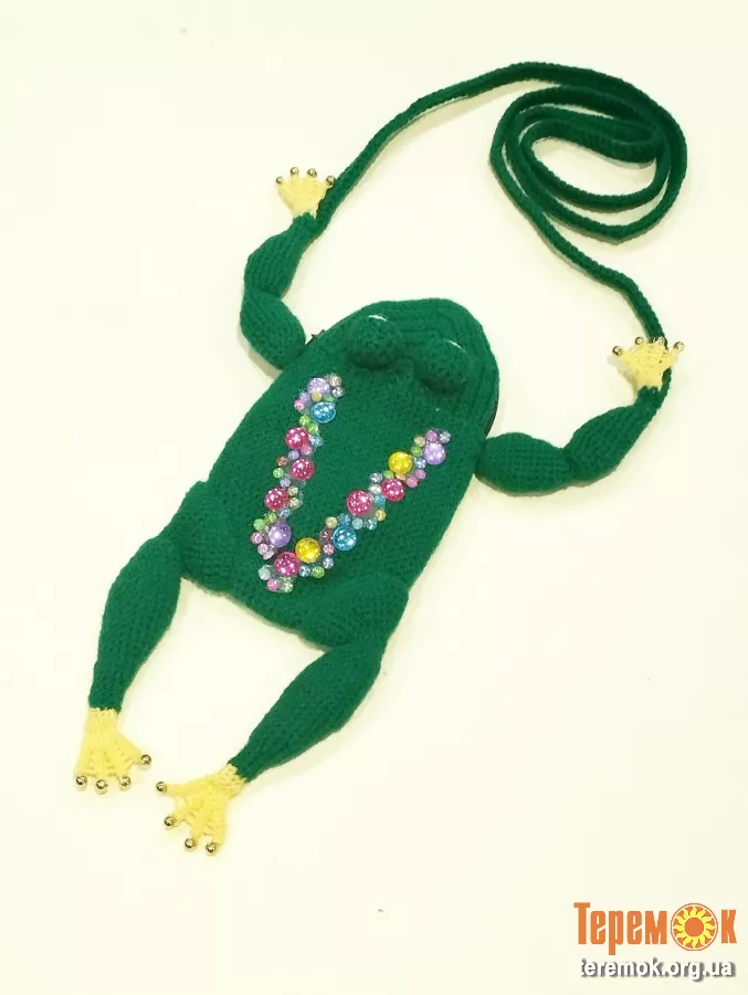 Сумка на довгій ручці у вигляді жаби для дрібниць.