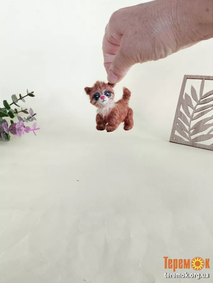 Маленька кішка висотою 6 см. Довжиною тіла 5 см.