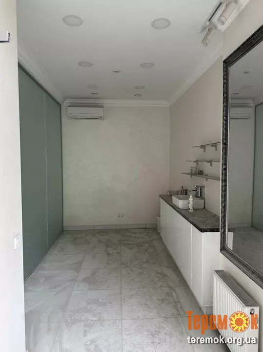 офисное помещение ЖК Тирас/ Королева. Высокий первый этаж / 16 эт. 4 помещения - общий зал разделен на 2 части + сан узел и кухня. Нужен косметический ремонт. В стоимость входит вся мебель для салона красоты.
