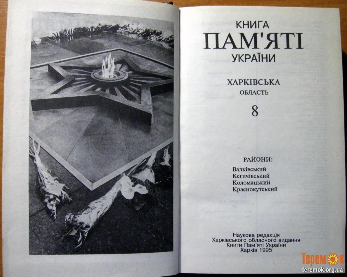 До восьмого тому Харківської обласної Книги Пам’яті увійшли історичні нариси про найважливіші події у Валківському, Кегичівському, Коломацькому та Краснокутському районах у роки Великої Вітчизняної війни, списки полеглих на фронтах захисників Батьківщини, партизан і підпільників.