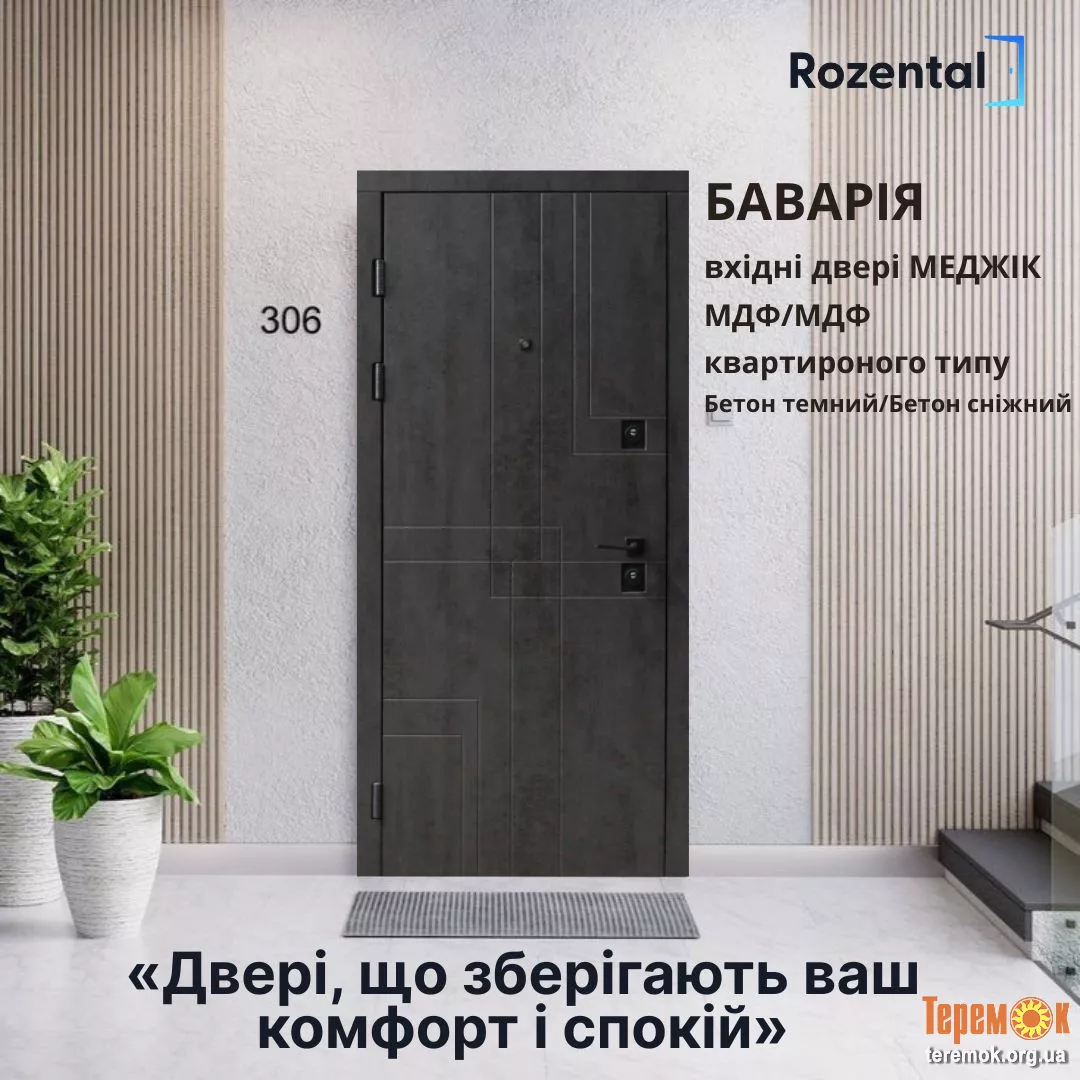 Модель «Баварія» представлена в кольорі бетон темний (назовні) і бетон світлий (всередині приміщення), яка підкреслить індивідуальність вашого інтер`єру та забезпечить надійний захист вашого будинку! Металеві двері мають зовнішню і внутрішню накладки МДФ, призначені для встановлення їх в якості вхідних, квартирних.