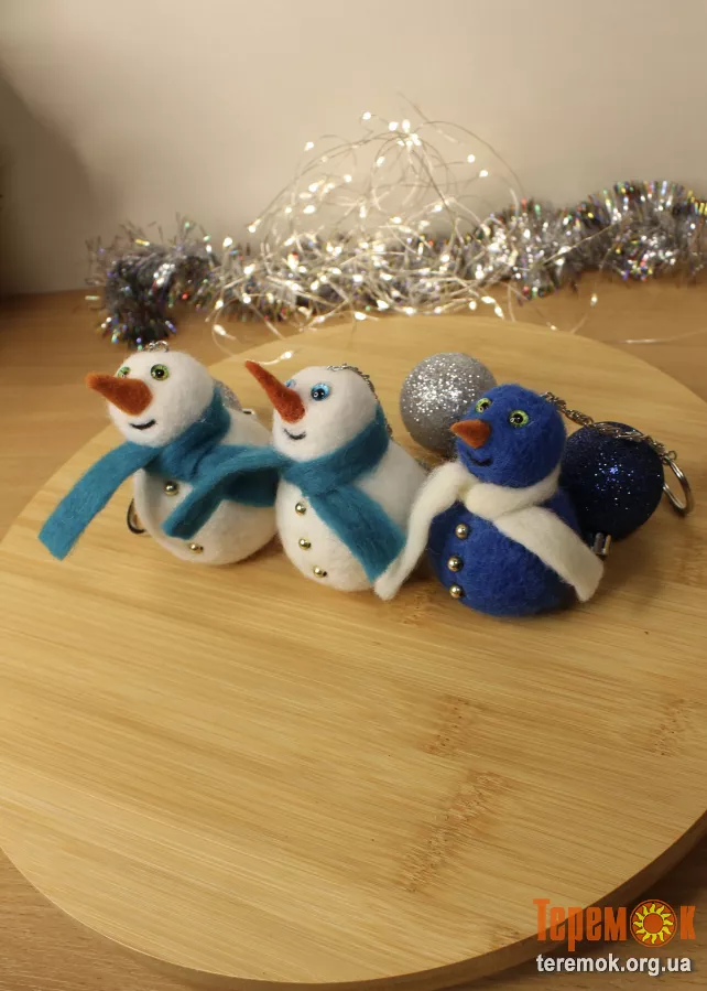 Іграшки для ялинки снеговик валяний іграшка брелок з шерсті інтерєрна прикраса брелока подарунок сувенір