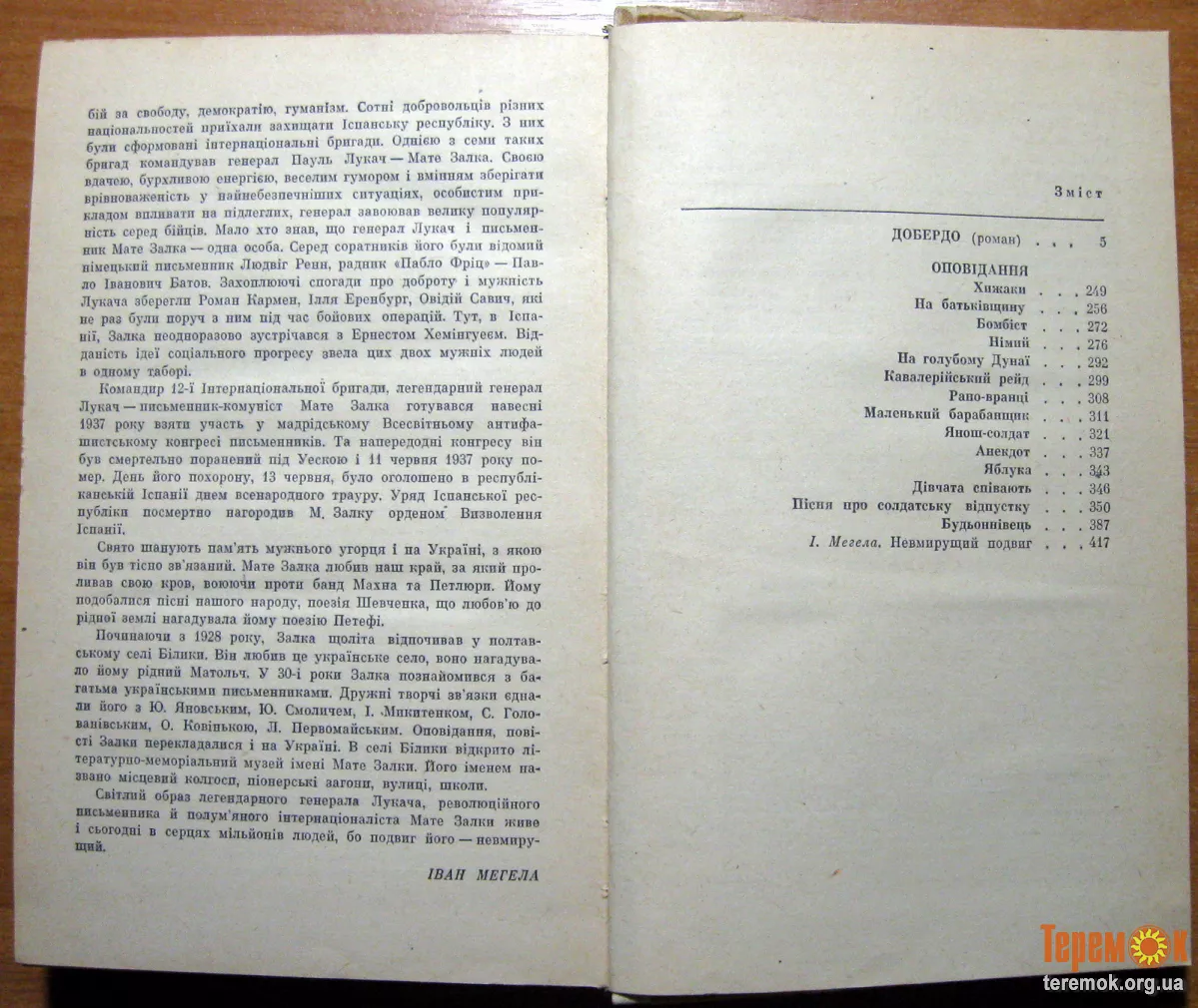 Головним мотивом усієї творчості Мате Залки було «інтернаціональне братерство». Безґлуздості та несправедливості «імперіалістичної» Першої світової війни присвячено найвідоміший твір Залки — роман «Добердо» (1937).