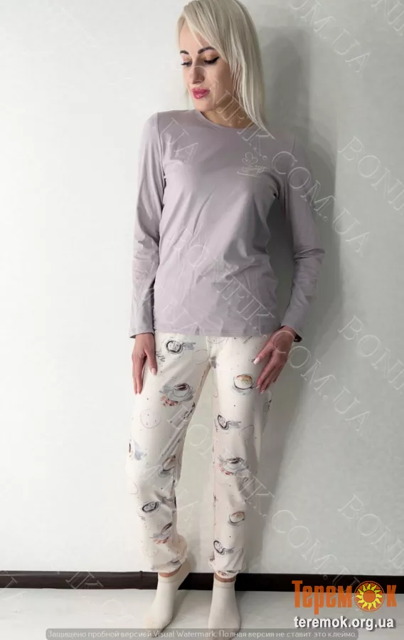- Теги: жіноча піжама, піжама для сну, домашній одяг для жінок, жіноча піжама з брюками, піжама з довгим рукавом, бавовняна піжама, затишна піжама, піжама для дому, стильний домашній одяг, піжама з принтом