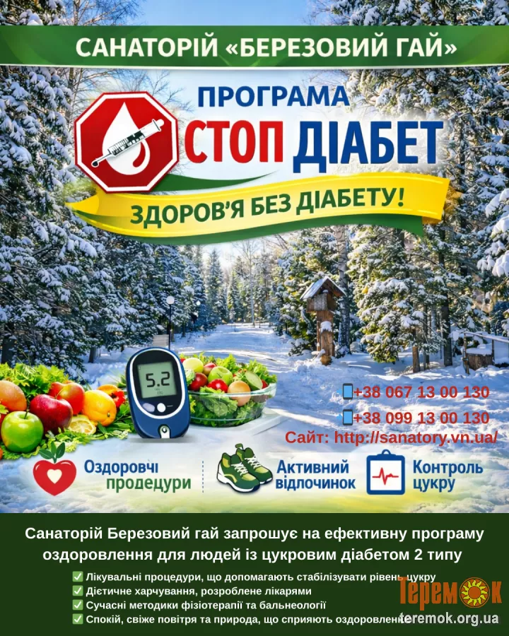 Санаторій Березовий гай запрошує на ефективну програму оздоровлення для людей із цукровим діабетом 2 типу