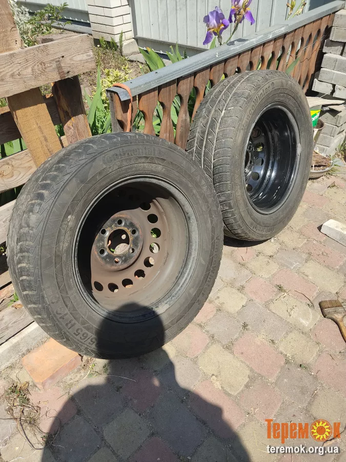 Два колеса на спринтер вантажний. Служили запасними на спринтері 313.Диски практично нові, резина б/у але ще досить добра. Продаю в звязку з продажжею буса.