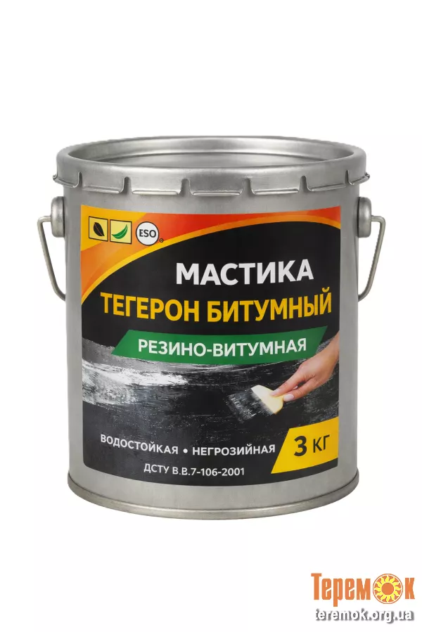 ТЕГЕРОН Битумный ЭКОБИТ ведро 3,0 кг мастика резино-битумная ДСТУ Б В.2.7-106-2001 Представляет собой гидроизоляционную герметизирующую строительную мастику, изготовленную на основе бутилкаучука, битума и других технологических добавок.
