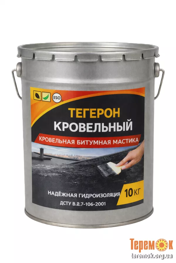 Тегерон Кровельный Ecobit ведро 10,0 кг - кровельная битумная мастика ДСТУ Б В.2.7-108-2001 Представляет собой герметизирующую, гидроизоляционную, антикоррозионную нетвердеющую мастику, изготовленную на основе бутилкаучука, битума, наполнителей и других технологических добавок