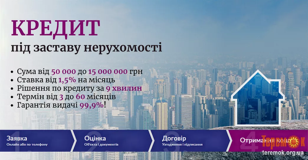 Кредит під заставу нерухомості в Києві швидко та без довідок.