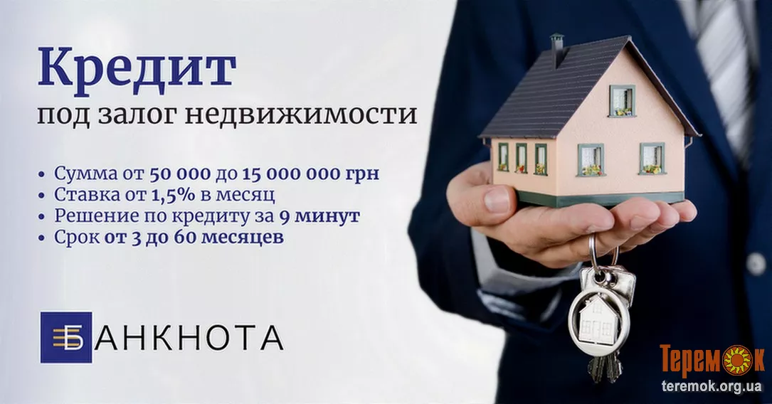 Срочный кредит в Киеве под залог недвижимости.