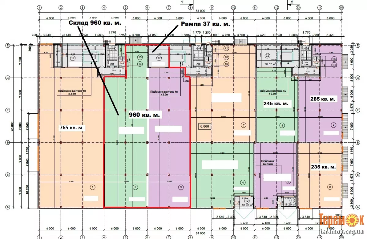 Площа 960 м2, 1 поверх, склад плюс 37 кв. м. рампа під навісом