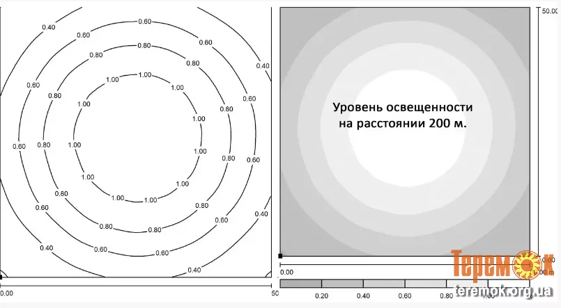 Модельний ряд прожекторів промислових має кут розсіювання світла від 15 до 120 градусів.