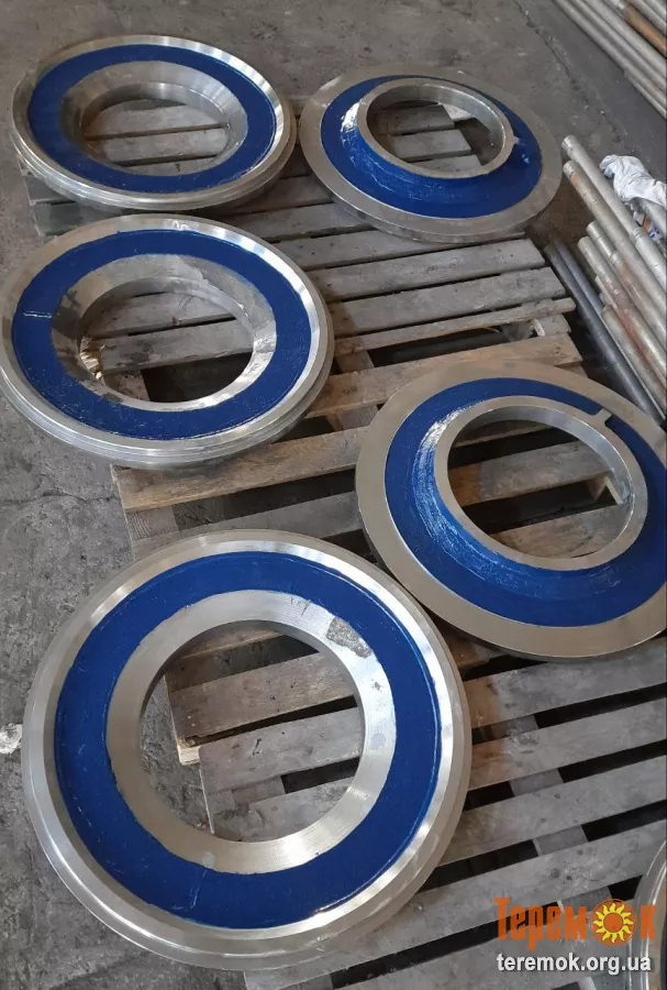 -комплектуючі та деталі обертання: фланці, втулки, поршні, кільця, штуцери, а також опорні елементи та основи;