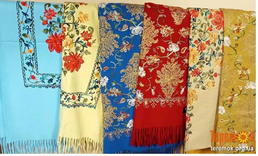 Кашеміровий шарф з вишивкою, палантин. Різних кольорів (червоний, блакитний, оливковий, синій, бежевий, бордовий). М'яке розкішно-ніжне кашемірове полотно добре зігріває, відрізняється міцністю та зносостійкістю. Палантин з вишивкою – це стильна класика, яка завжди залишається актуальною.