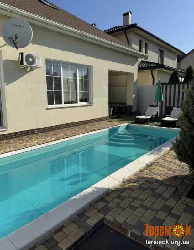 На ділянці перед будинком є великий басейн із зоною відпочинку на шезлонгах, є барбекю з садовим каміном для приготування смаколиків.