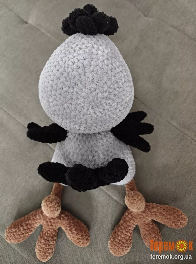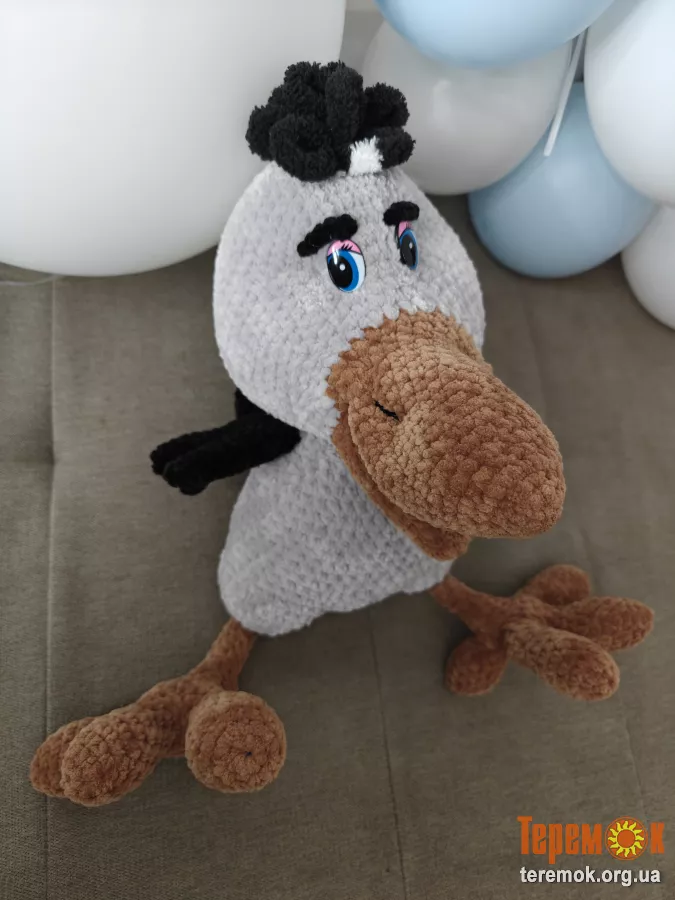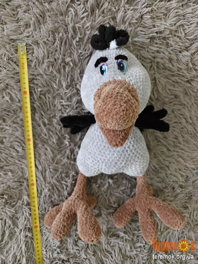 Очі іграшки закріплені на безпечному кріпленні, а дзьоб і лапки виготовлені без каркаса, що гарантує безпеку для діток під час гри та мінімізує ризик травм.