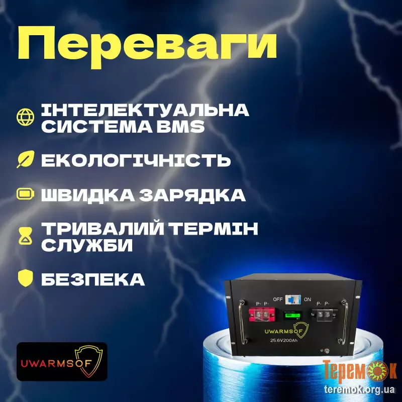Warmsof WA-25-200 – аккумулятор нового поколения. создан по технологии LiFePO4 (литий-железо-фосфат). Уникальность литиевой технологии заключается в добавлении железа в литий-ионный состав. В плане преимуществ полностью вытесняет свинцово-кислотные АКБ.