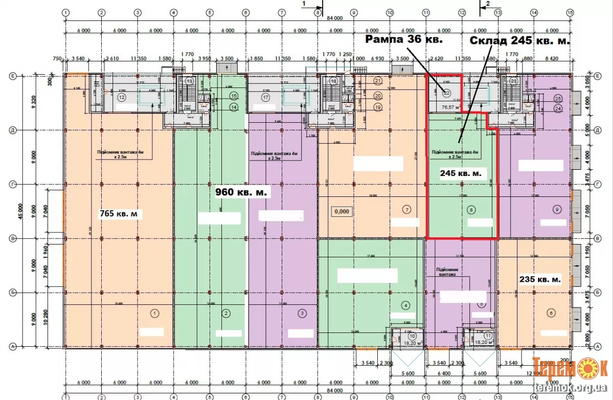 Площа 245 м2, 1 поверх, склад плюс 36 кв. м. рампа під навісом