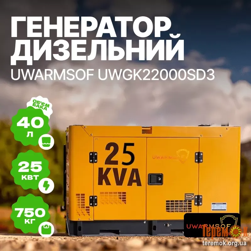 Генератор дизельный uWarmSof UWGK22000SD3 25 кВА/20 кВт 3 фазы