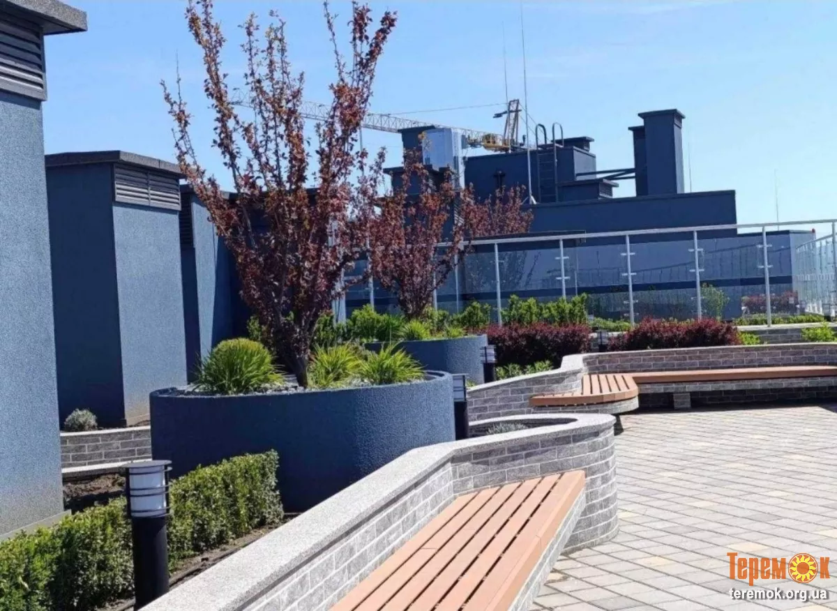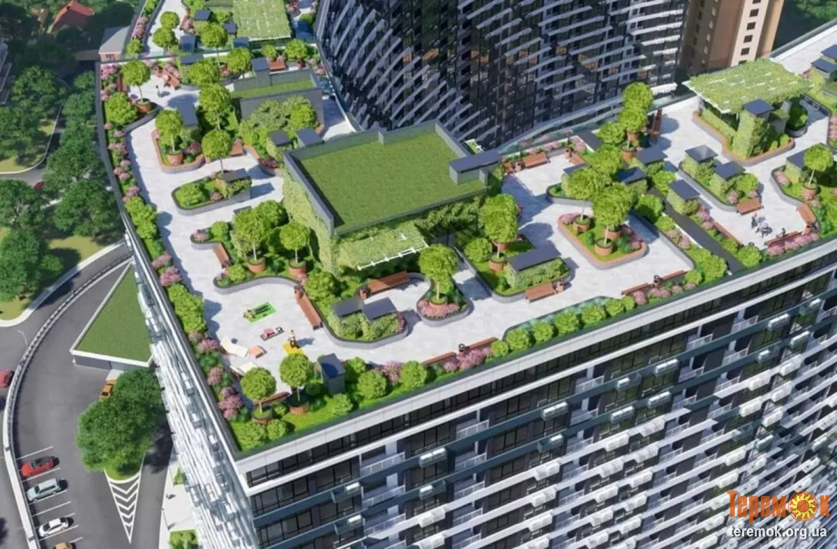 Особливістю комплексу є тераси на даху з панорамним видом на морський берег та місто.