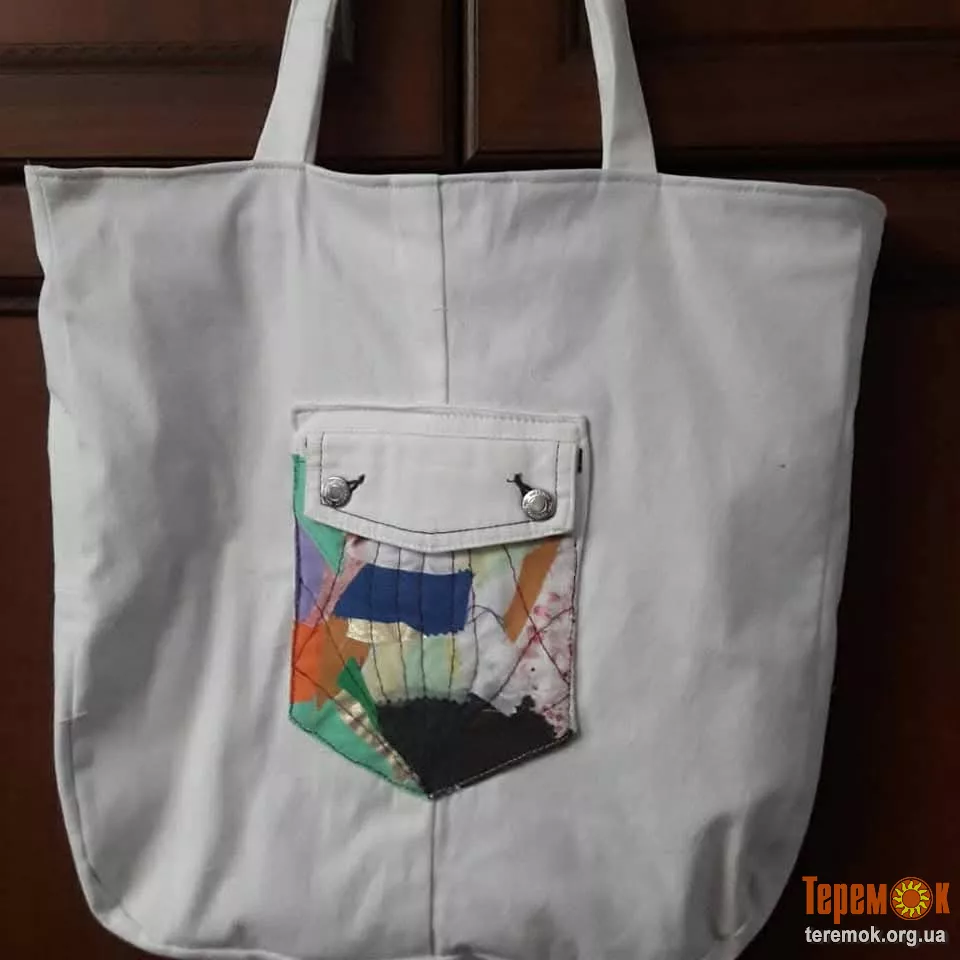 Міська сумка шоппер з джинсової тканини на підкладці. Відділка аплікацією та гудзиками. Всередині два кармана. Один на блискавці, інший накладний. Зовнє накладний карман в стилі "Піца".