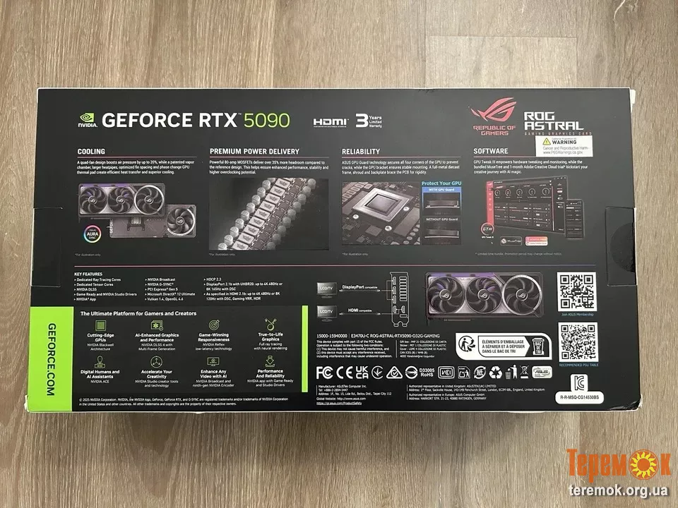 Оптовая продажа видеокарт ASUS ROG Astral GeForce RTX 5090 на базе архитектуры NVIDIA Blackwell с 21 760 ядрами CUDA, 32 ГБ памяти GDDR7, 512-битной шиной и частотой до ~2,6 ГГц (разгон), поддержкой PCIe 5.0 и DLSS 4 для экстремальных игр в разрешении 4K/8K.