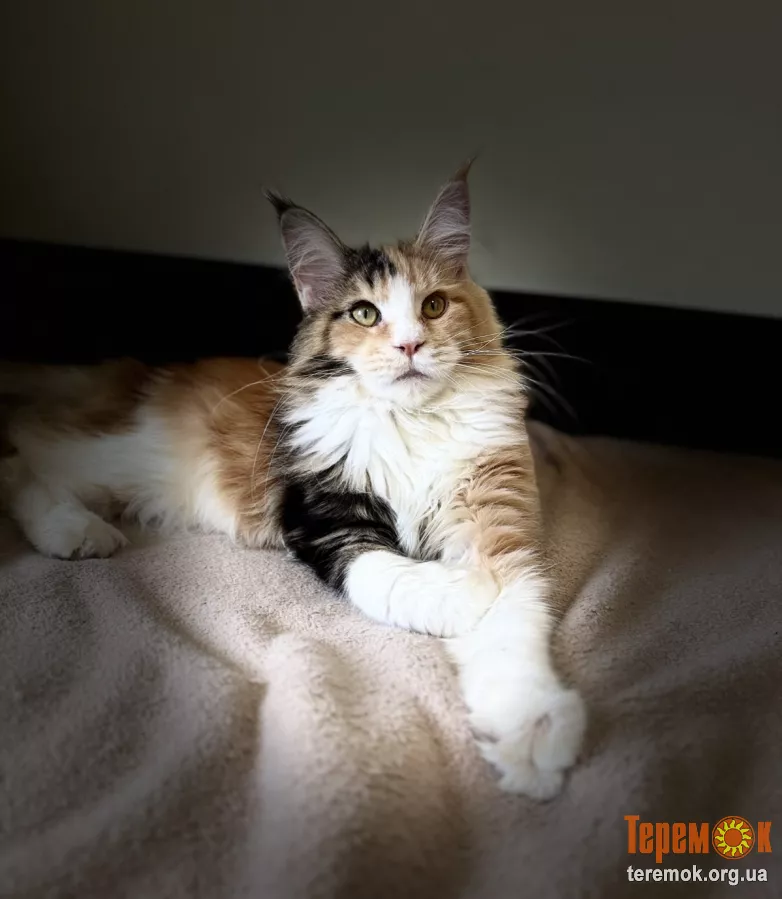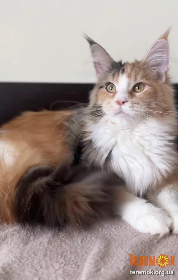 Розплідник Kust Kalyny пропонує дівчинку породи Мейн кун яскравого черепахового окрасу.