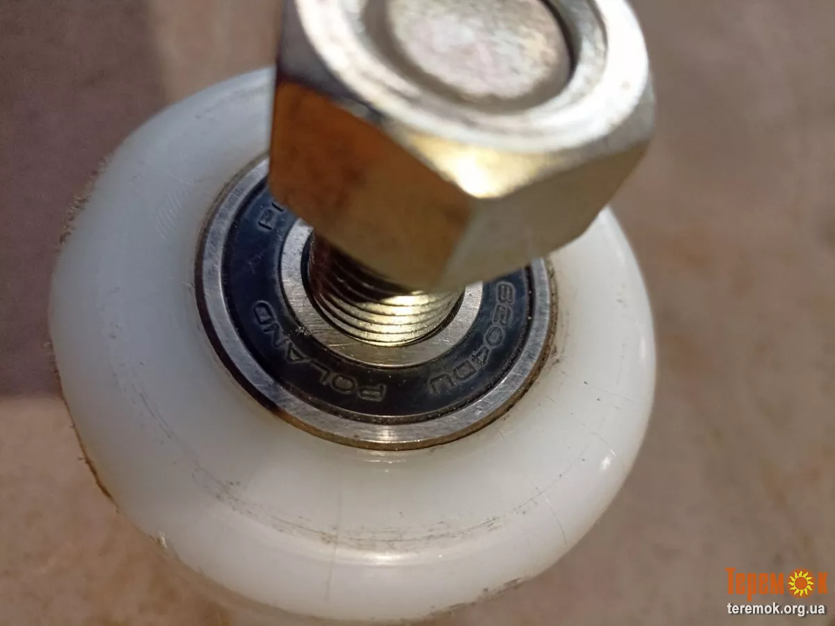 Ролик з підшипниками, у відмінному стані. Знос мінімальний, матеріал нейлон.