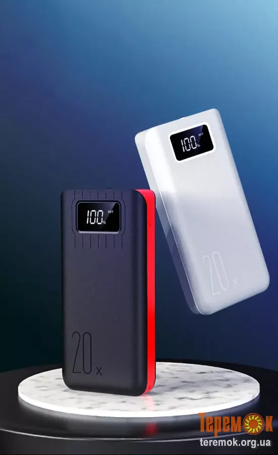 Ємність: 20000 mAh, що забезпечує достатньо резервної енергії для зарядки різних пристроїв.