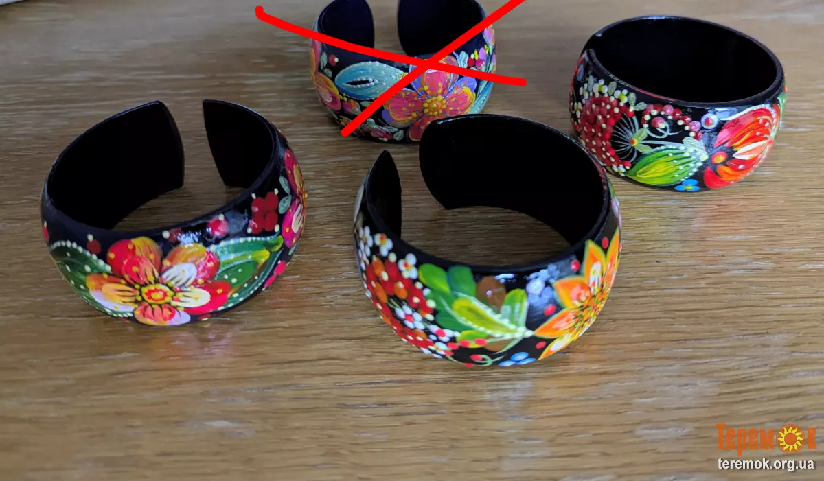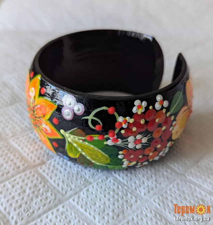 Браслети з бука діаметр 65 мм, ширина 35мм, петриківський розпис, фарби акрилові стійкі, покрито три рази лаком. Гарний подарунок для дівчаток на Свято. З початку пишіть у чат або вайбер. Відправляю Укрпошта і Нова пошта.