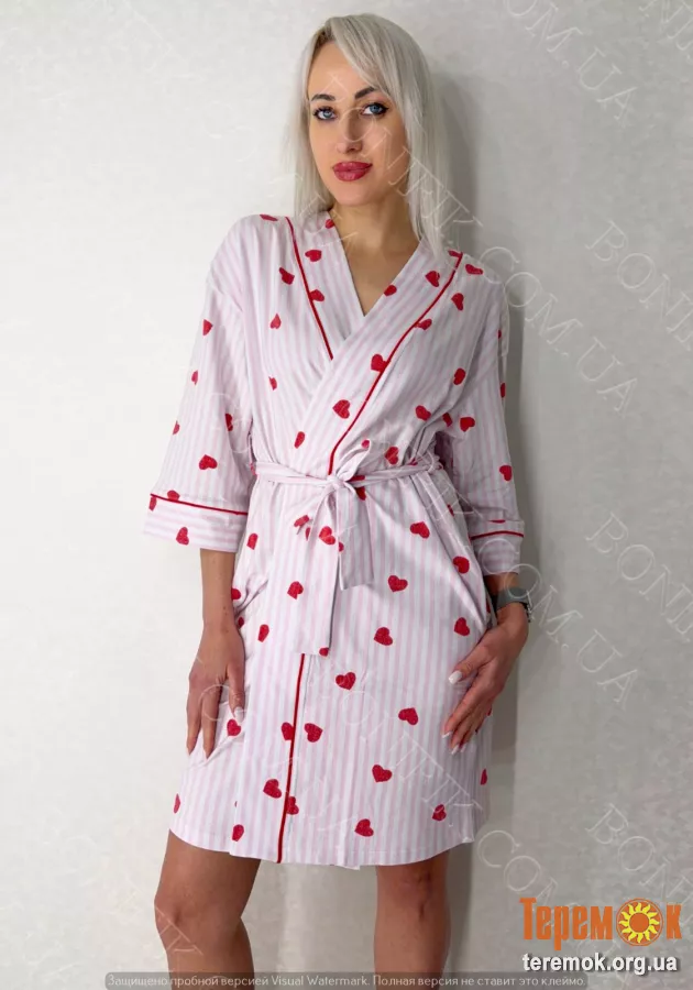 - Теги: короткий домашній халат, бавовняний халат жіночий, гарний жіночий халат, домашній одяг для жінок, халат з поясом, халат для дому, домашній халат жіночий, легкий жіночий халат, халат на запах, жіночий халат