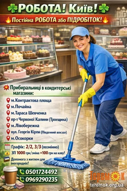 Оплата — 1000 грн за зміну + 100 грн на каву щодня!