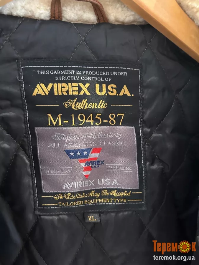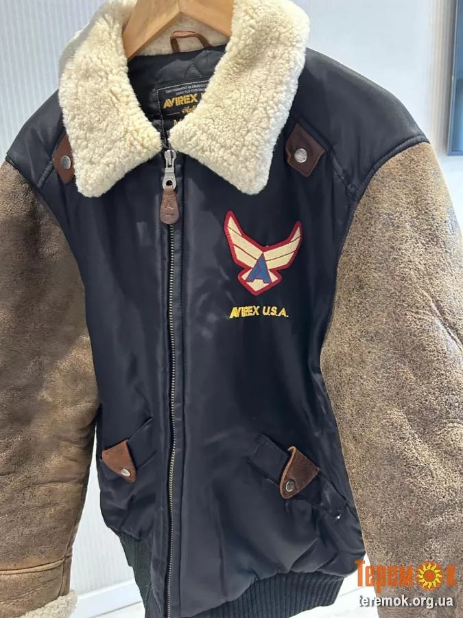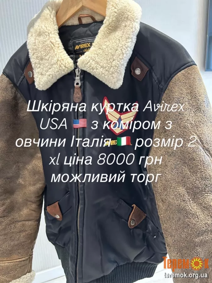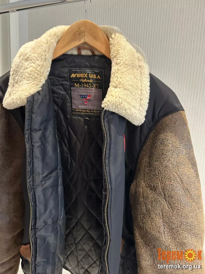 Шкіряна куртка Avirex USA з коміром з овчини розмір 2xl демісезон підходить як для чоловіків так і для жінок ціна 8000 грн